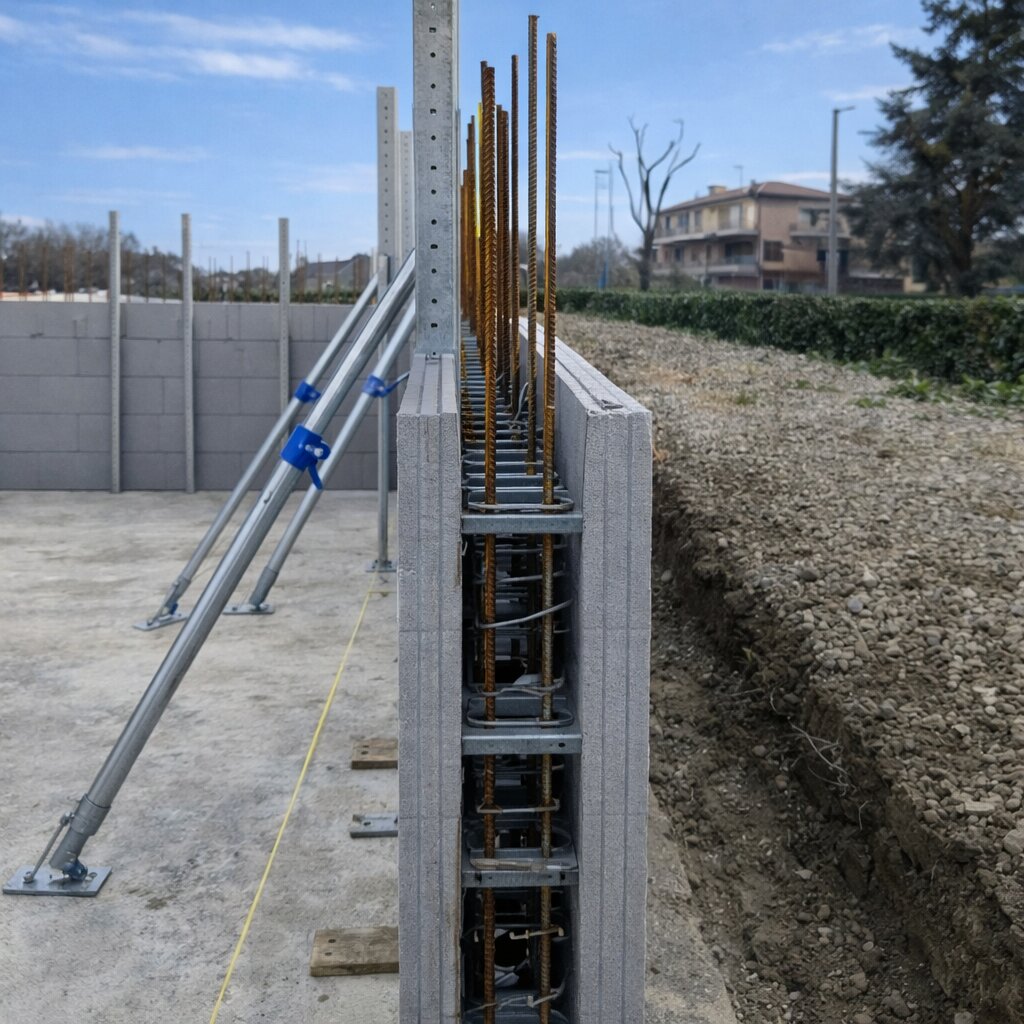 In questo modo, consente di realizzare pareti portanti in c.a. che svolgono contemporaneamente:
