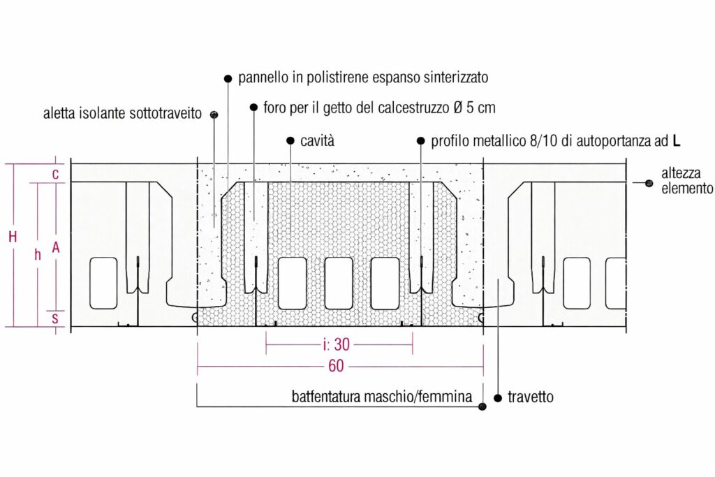 Dal punto di vista costruttivo, è progettato per la realizzazione di solai di interpiano e di copertura mediante getto in opera del calcestruzzo, consentendo di ottenere una struttura portante tradizionale in c.a. con isolamento termico integrato all’intradosso.
